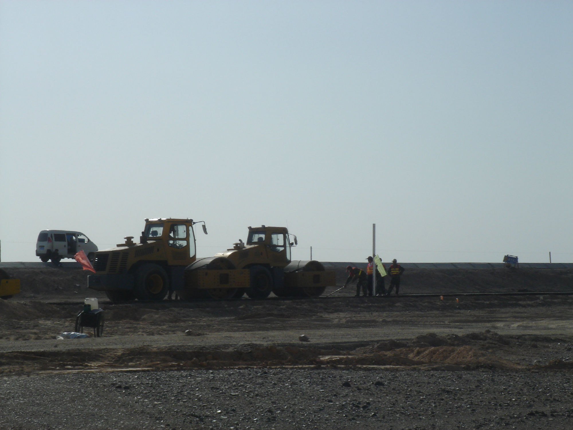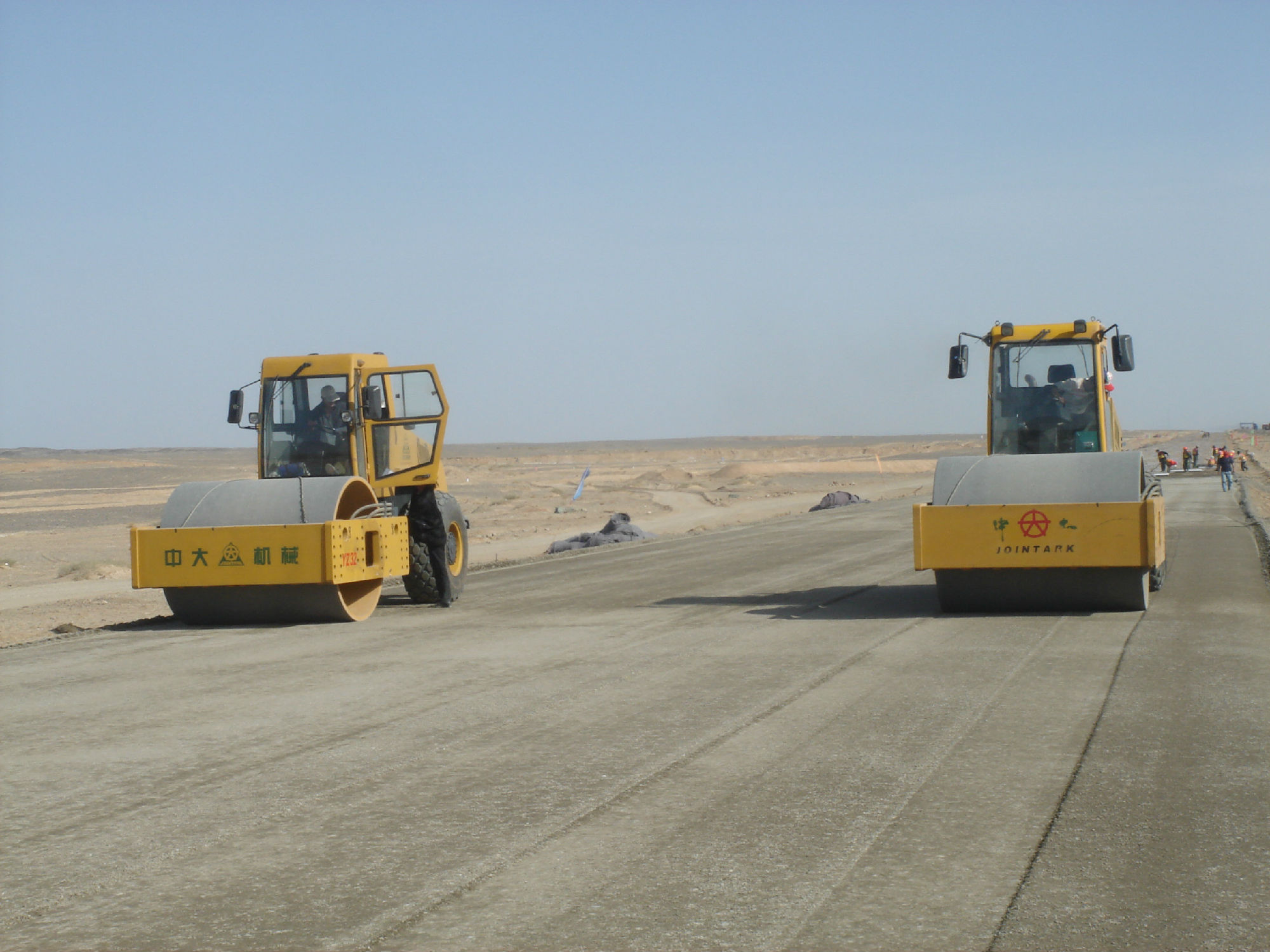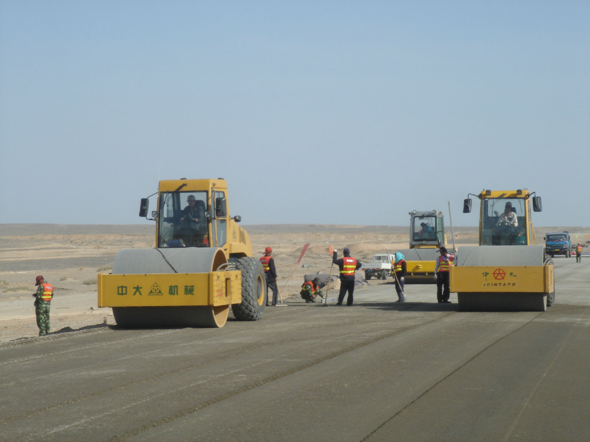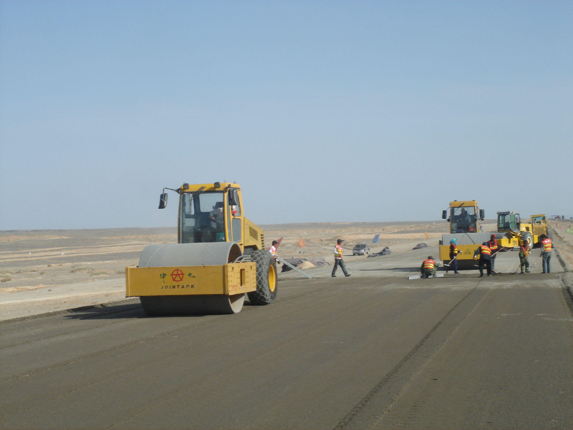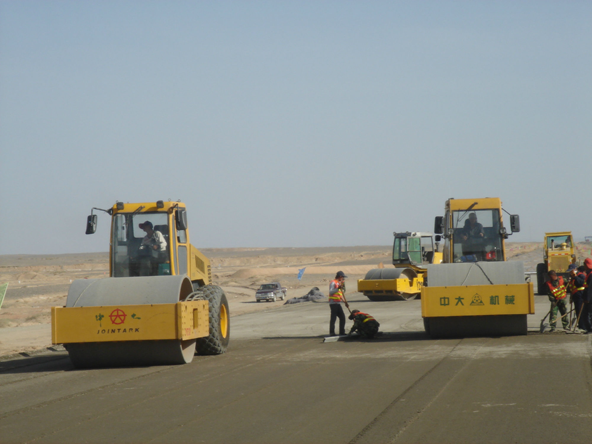 新疆星星峽至哈密高速工程,全線采用中大攤鋪與壓實全套設備,水穩施工采用全幅度大厚度施工工藝,將原來的分層施工工藝創新為大厚度單層施工工藝(兩層并作一層施工),松鋪厚度達到53CM,僅碾壓三遍,平均壓實度達到101,平整度、壓實度和整體強度達到并超過高速公路施工規范要求,在不增加任何成本的前提下大大的提高了道路的施工質量和施工進度。