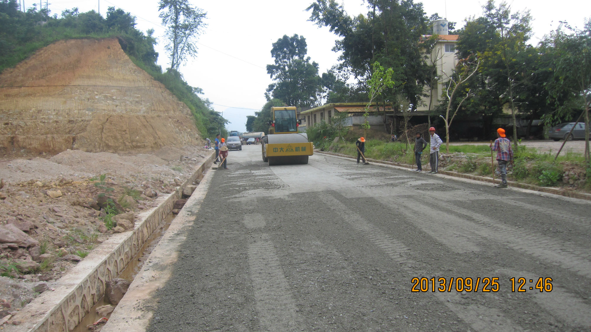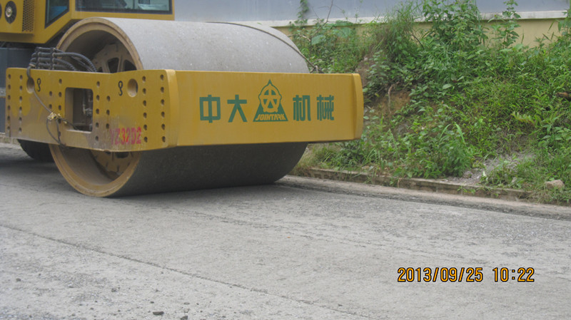 國道320云南德宏州芒瑞段改造工程,水穩施工采用大厚度施工工藝,將原來的分層施工工藝創新為大厚度單層施工工藝(兩層并作一層施工),采用YZ32超重噸位超大激振力全液壓自行式單鋼輪振動壓路機進行碾壓,松鋪厚度達到53CM,僅碾壓三遍,壓實度達到103,平整度、壓實度和整體強度達到并超過高速公路施工規范要求,在不增加任何成本的前提下大大的提高了道路的施工質量和施工進度。